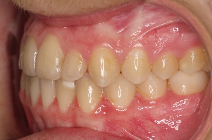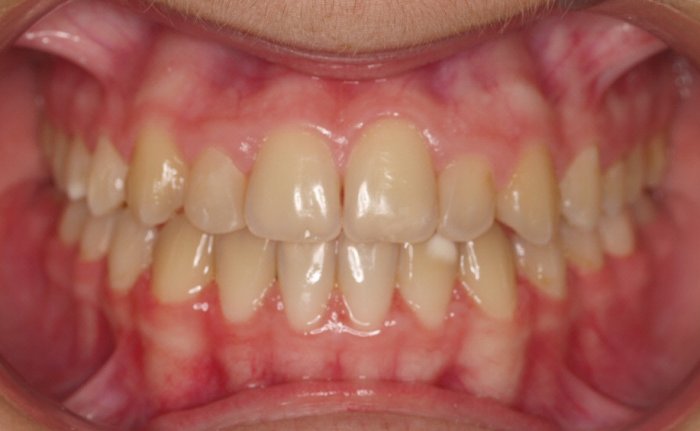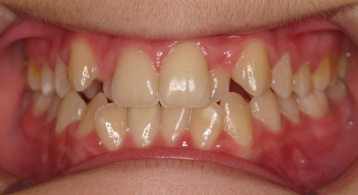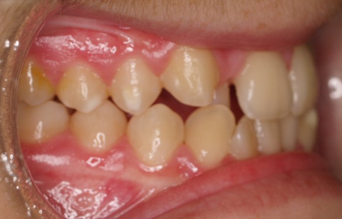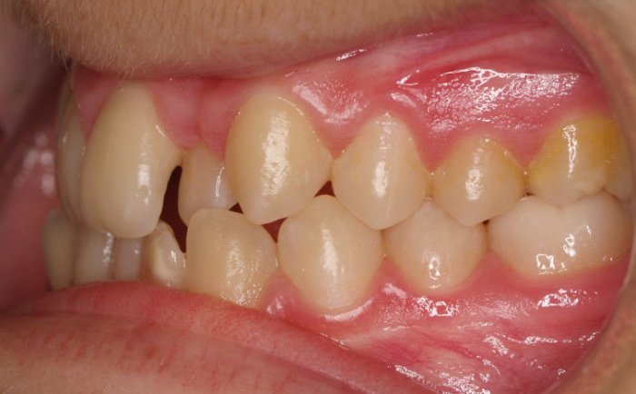 1) Maloclusión o malposición dentaria. El contacto incorrecto entre las arcafas superior e inferior o una mala alienación de los dientes puede producir la retracción de las encías.