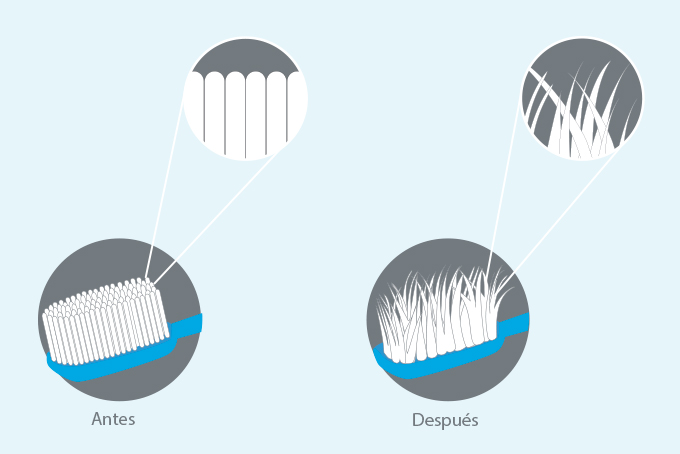 - Cambia tu cepillo cada 3 meses o cuando empieces a ver los primeros signos de desgaste de los filamentos.