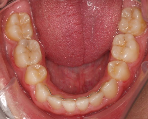 Lleva férulas ESSIX a la noche más una contención fija inferior de canino a canino.