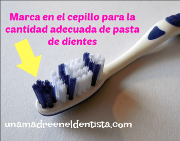 En este caso sirve para marcar la cantidad de pasta de dientes que debéis poner. Algunos tienen marcado de otro color en el centro del cepillo como puede ser el caso de los eléctricos y otros suelen utilizar la punta de los cepillos.