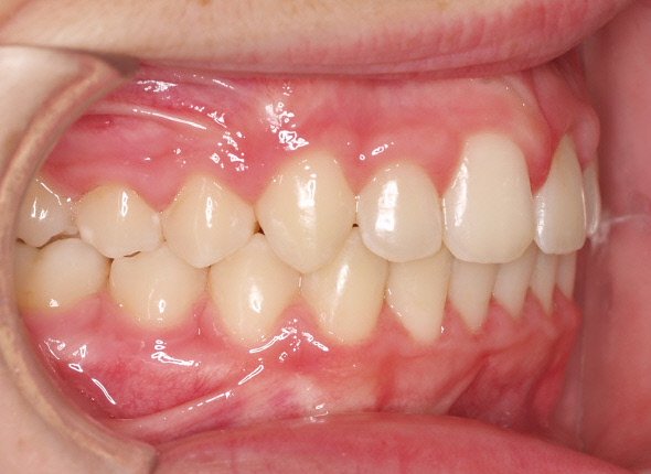 El tratamiento se hizo con brackets de autoligado y tuvo una duración de año y medio. Al finalizar, su dentista le hizo reconstrucción con carillas de los incisivos laterales 12.22.