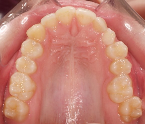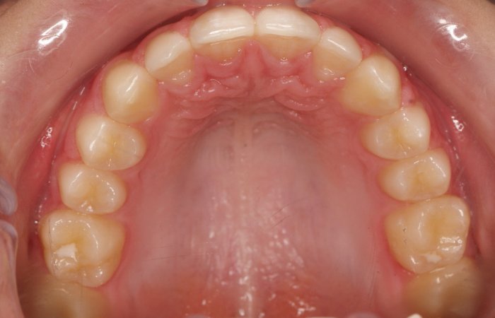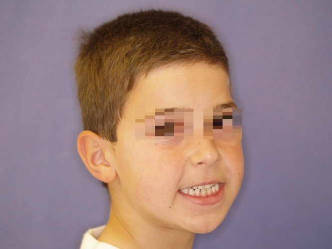 Paciente 7 años en dentición mixta. Los padres consultan por mordida cruzada anterior, así que decidimos hacer un tratamiento en dos fases; la primera interceptiva con una mentonera y la segunda con brackets SMARTCLIP 022 autoligados durante 22 meses.
