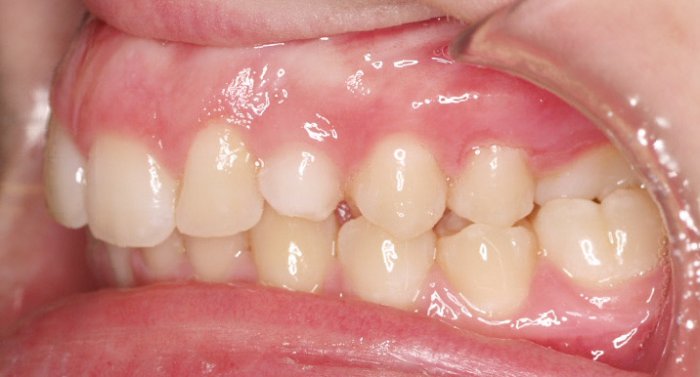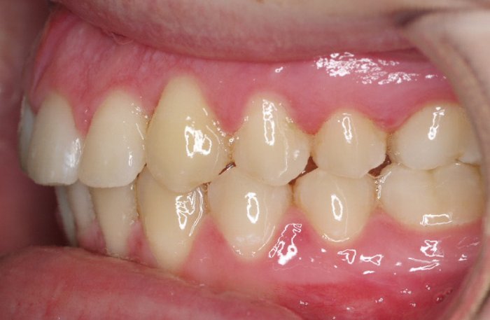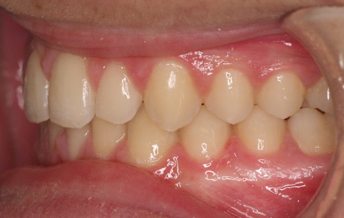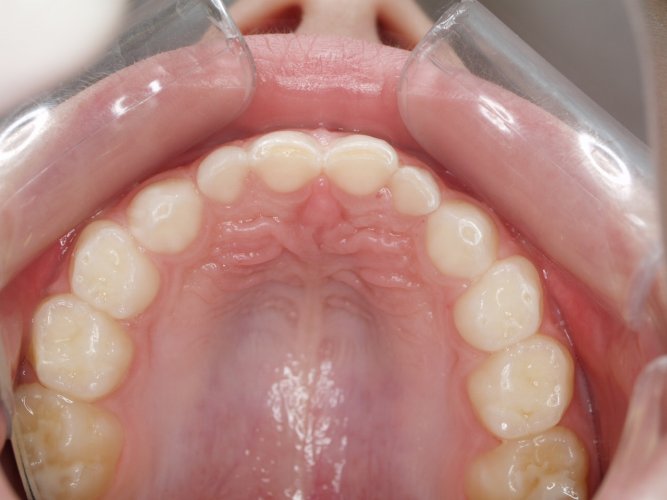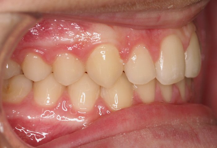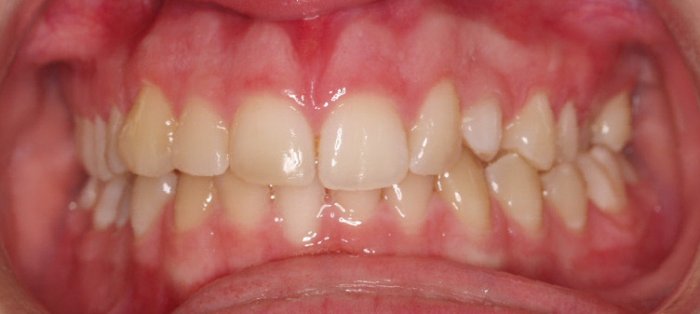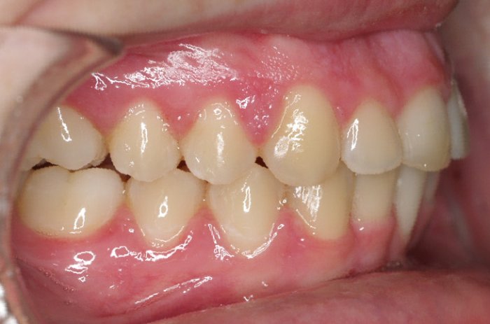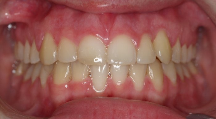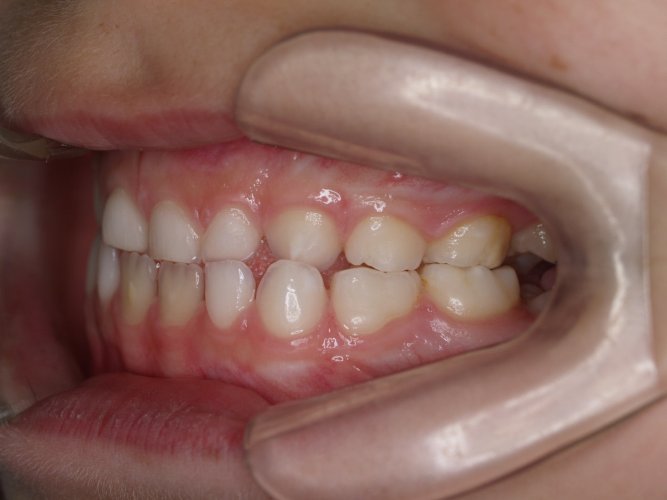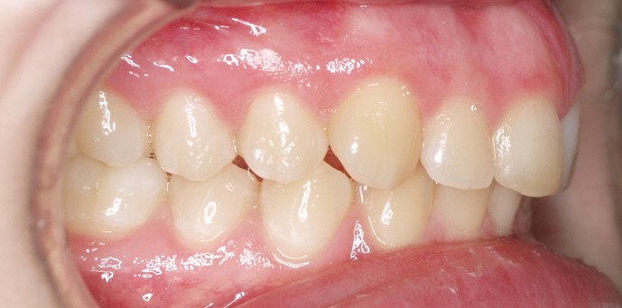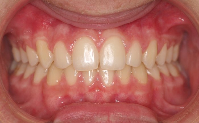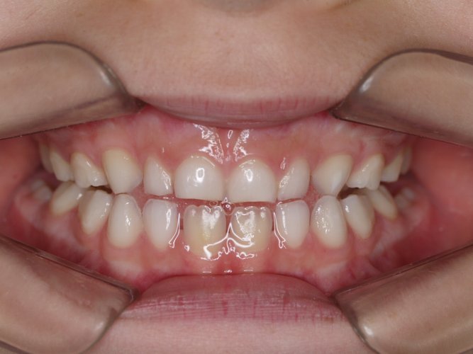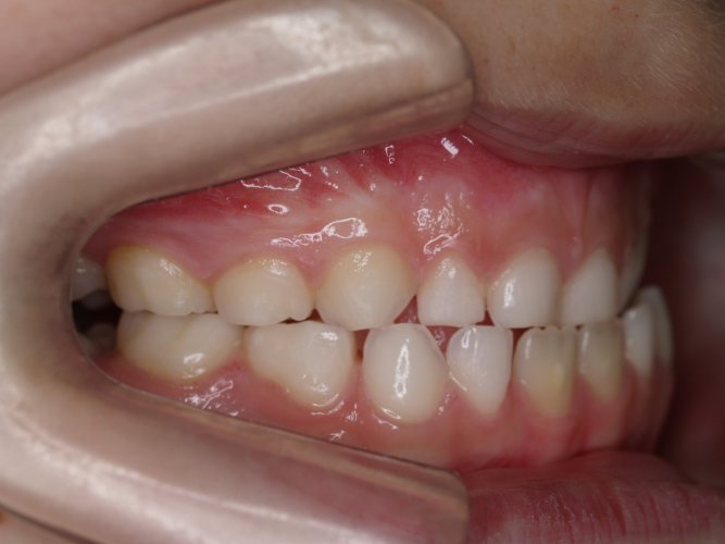 Decidimos colocar aparatología fija superior e inferior, con brackets de autoligado. A los 4 meses del tratamiento se realiza la fenestración del canino incluido. Un años después el colmillo estaba ya en la arcada y después procedemos a corregir la Clase II molar.