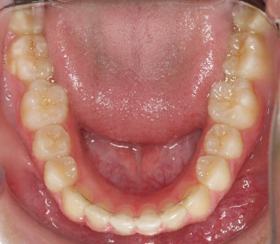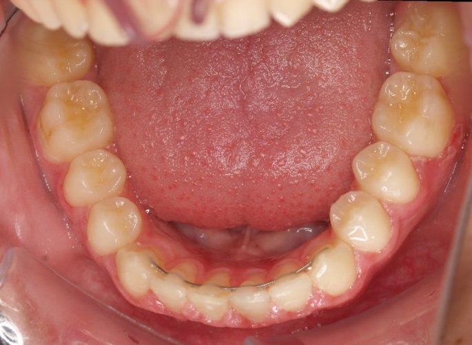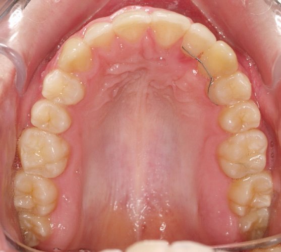 Quitamos el aparato en Agosto 2017. Colocamos contención fija en el canino superior y de canino a canino inferior. También lleva unas férulas ESSIX para mantener a la noche.
