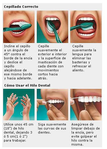 - Cepíllese en profundidad y use hilo dental por lo menos dos veces al día