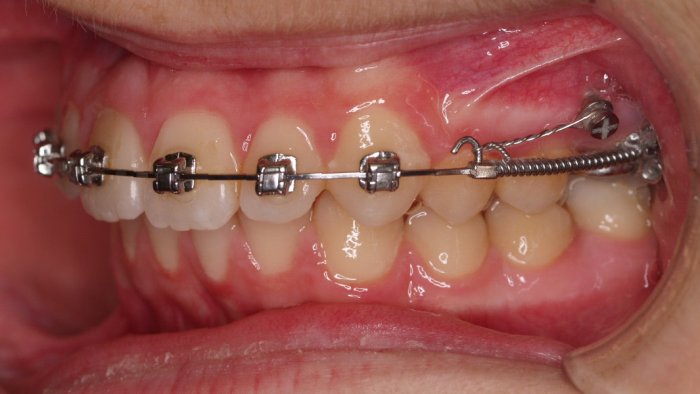 Paciente de 14 años, acude a nuestra consulta por dientes superiores proclinados hacia delante y apiñamiento. El paciente presenta una full clase 2, sobremordida y dientes inferiores proclinados. Decidimos colocarle brackets Damon y microtornillos en maxilar superior para distalizar las muelas. La duración del tratamiento fue de  24meses, y ahora lleva 1 año de contención. El paciente se pone la férula Essix superior 1noche/2 y la de abajo 1noche/semana para mantener.