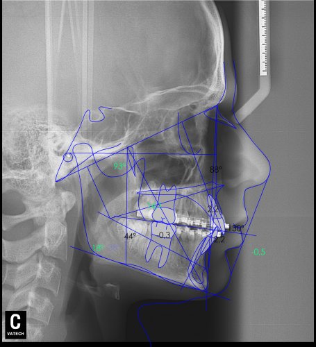 Paciente de 14 años, acude a nuestra consulta por dientes superiores proclinados hacia delante y apiñamiento. El paciente presenta una full clase 2, sobremordida y dientes inferiores proclinados. Decidimos colocarle brackets Damon y microtornillos en maxilar superior para distalizar las muelas. La duración del tratamiento fue de  24meses, y ahora lleva 1 año de contención. El paciente se pone la férula Essix superior 1noche/2 y la de abajo 1noche/semana para mantener.