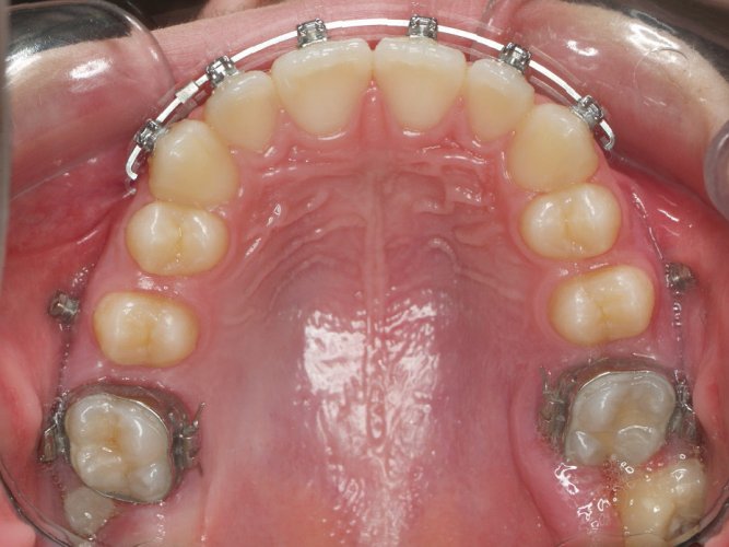 Paciente de 14 años, acude a nuestra consulta por dientes superiores proclinados hacia delante y apiñamiento. El paciente presenta una full clase 2, sobremordida y dientes inferiores proclinados. Decidimos colocarle brackets Damon y microtornillos en maxilar superior para distalizar las muelas. La duración del tratamiento fue de  24meses, y ahora lleva 1 año de contención. El paciente se pone la férula Essix superior 1noche/2 y la de abajo 1noche/semana para mantener.